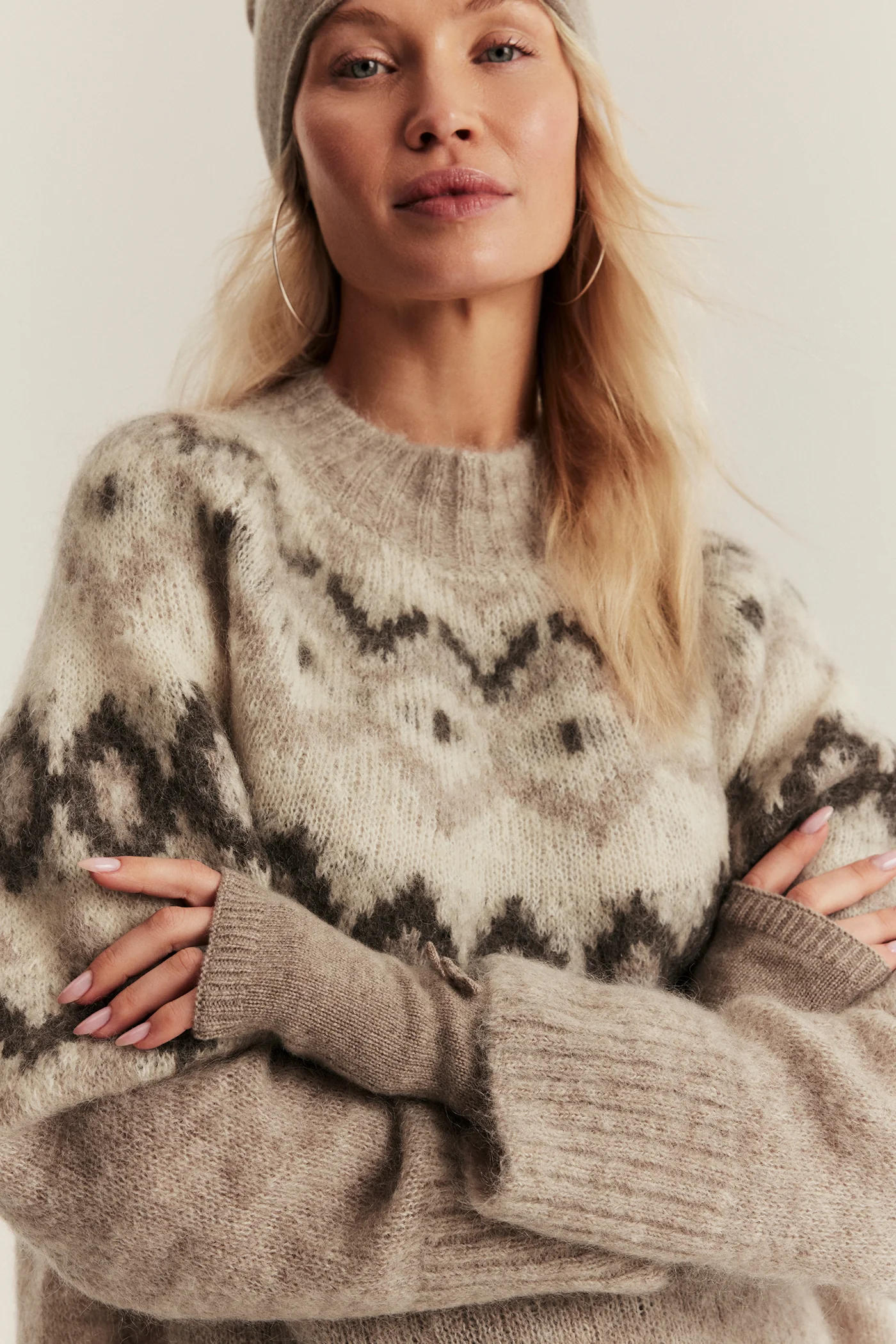 Women's beige wool and cashmere blend wrist warmers